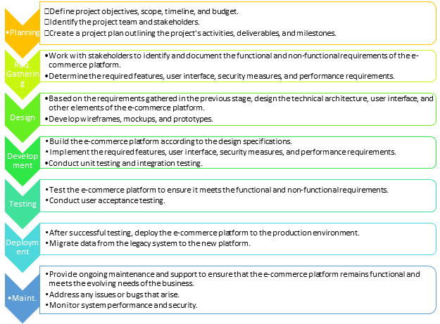 This workflow can be adapted to suit the project’s specific requirements and can be managed using different methodologies such as Agile, Waterfall, and Hybrid. By following this workflow, the project team can deliver a successful e-commerce platform that meets the needs of the business and stakeholders.